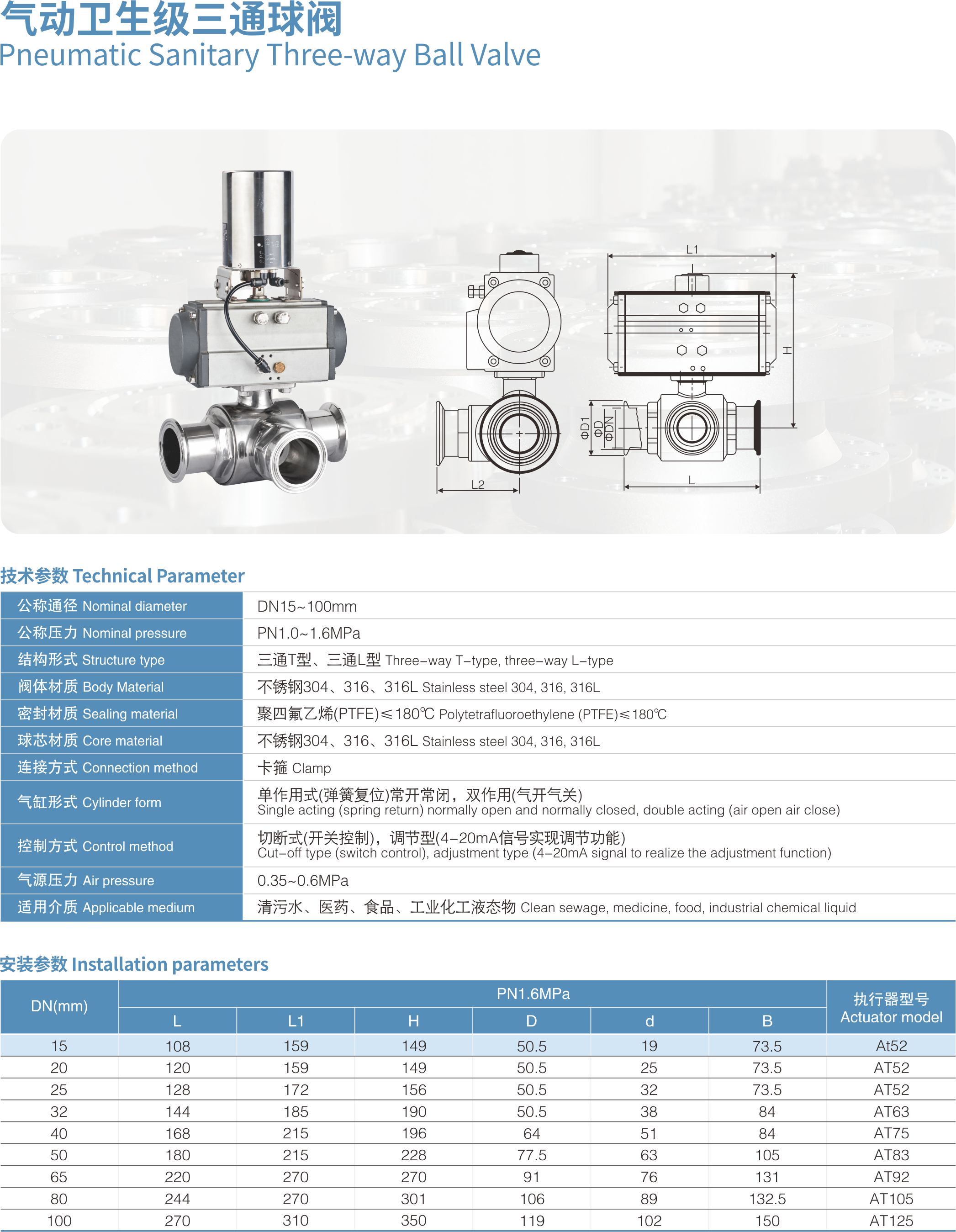 气动卫生级三通调节球阀